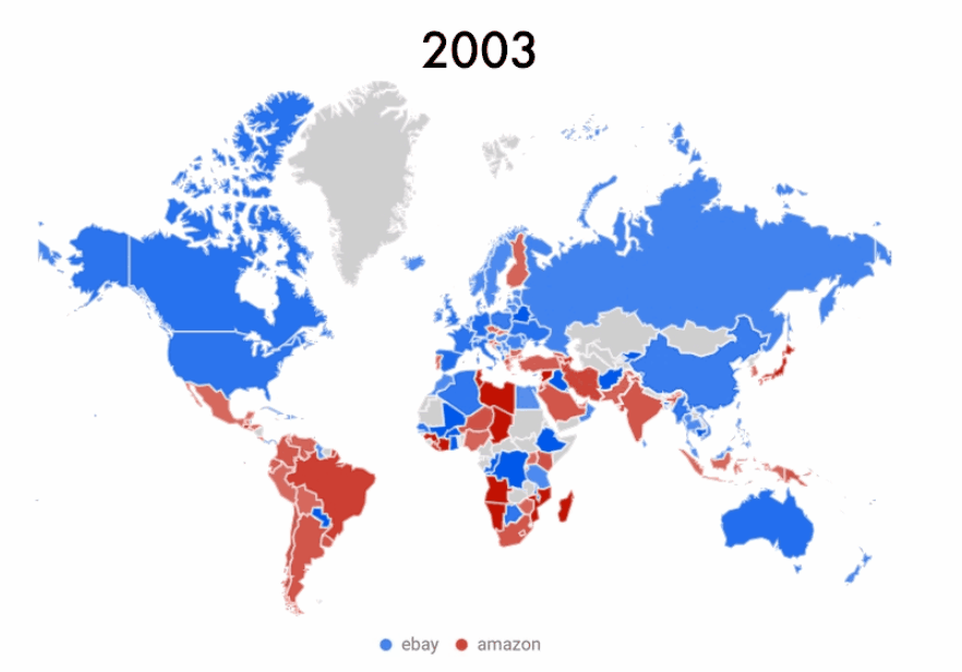 Ma quando è avvenuto il passaggio di testimone da Ebay ad Amazon? In realtà le ricerche dimostrano che si tratta di un fenomeno recente.